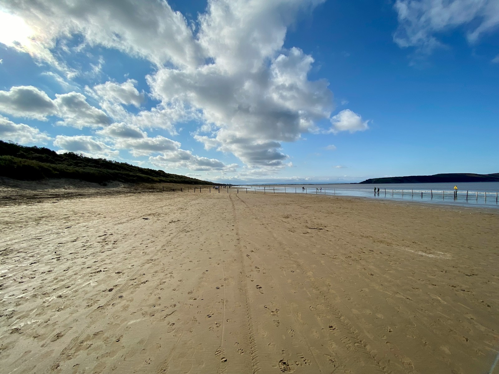 At low tide, the beach extends for hundreds of metres, revealing vast flats of firm sand perfect for walking, games, and kite flying. The scale is impressive and somewhat unusual for British beaches, more reminiscent of the great Atlantic beaches of France than the typical coves and bays found elsewhere in Wales.